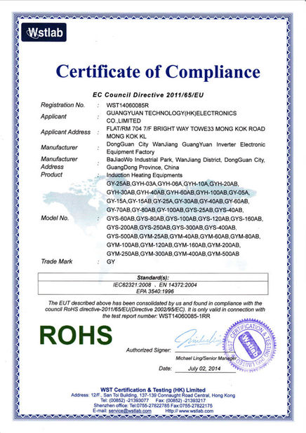 4.GYيجلب معدات اختبار الجودة المتقدمة للتحكم في جميع آلات التسخين التعريفي.
